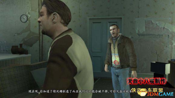 关卡介绍:到Playboy家,Niko毛遂自荐要找活干,然后刚从监狱放出来的Dwayne也来了。Playboy以前是跟着Dwayne混的,不过自从Dwayne吃了牢饭后,Playboy就把生意接手了,第一次遇到Playboy的任务里最后送他回来的时候就提到过一些这个事。而从牢里出来的Dwayne已经风光不再,Playboy介于情面而把Niko推荐给了Dwayne。从两人的话语中也可以看出两人目前的关系并不怎么样,Playboy虽然一再强调Dwayne是自己的带路人,但言语轻佻,从表情就可以看出在他现在这个位置,对Dwayne已经没有了尊重,虽然承认所有的东西都是Dwayne的,但并没有要还给他的意思。而Dwayne也对Playboy感到寒心和无可奈何。