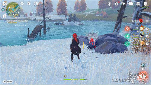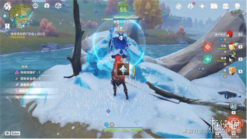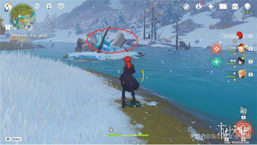 3、然后到河对岸拿深赤之石,砍一下冰晶,即可得到第一个龙牙。