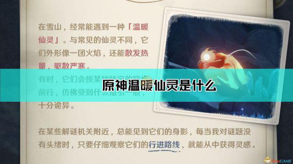温暖仙灵是《原神》中的引路小精灵,和蒙德以及璃月地区的作用相同,跟着它们走可以前往宝藏的藏身处,等它们插到柱子里就行了。雪山区域的仙灵还有一个作用就是可以消除冷冻条,防止掉血。