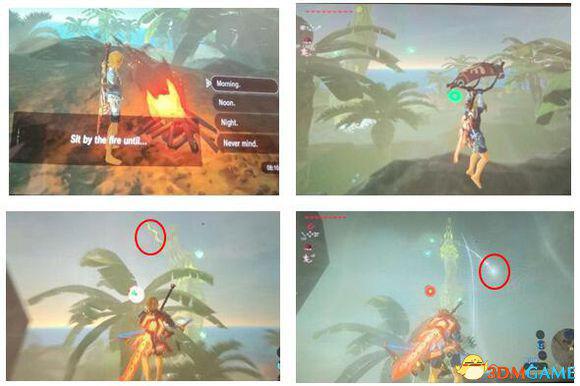 然后找好位置,生火,休息,选择第一个,休息到第二天的5AM,奇迹出现了,先是地震,出现上升气流,赶紧按X,飞起来,你就看到一条龙,每次休息都会出现一次,可以无限刷,利用空中停留时间,拉弓,对着龙角射,然后出现有闪光东西掉落,绝对是好东西。但是不要急着捡,继续生火,起跳,射角,重复N遍。射到没力了,才去捡。