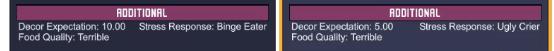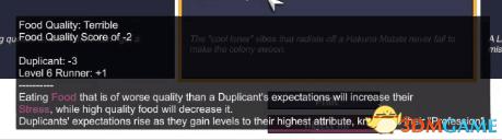 这个食物的质量等级会决定小人的压力增减,看来新版本食物处理有了新的要求