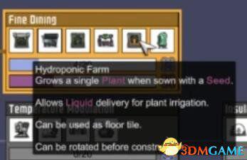 没错,就是植物,溶液培养瓷砖可以选择4种植物,其中有我们熟悉的食用树和刺花,另外2个我从直播中只能看见一个,就是蔓藤(翻译文本里起码有5种植物没放出来的,这次官方放了蔓藤,右边那个植物看不到,官方真会吊胃口)
