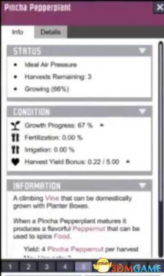 蔓藤属性截图,可以收获3次,同样需要气压,另外在直播中蔓藤长在了氯气区域,不知道生存环境是否需要氯气