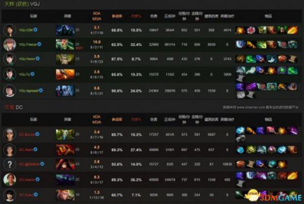 虽然VGJ前期占据了主动,但是DC一直在刷,三点金+猛犸BUFF剑圣,VGJ再不有所突破很危险。19分钟刷的挺开心的DC突然上路抱团推进,团战完全不敌VGJ,送掉了卡尔剑圣和VS。Fy猴子因为带线被小强+卡尔天火多次击杀,DC一共五个人头,Fy占了三个。22分钟VGJ打掉肉山,霸气小狗带盾。