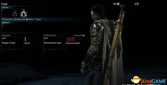 装备栏:主武器,匕首,弓箭,铠甲,披风,戒指。