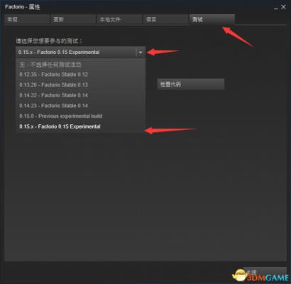 steam右键异星工厂(Factorio),依次点击属性——测试,然后选择对应的0.15版本即可!