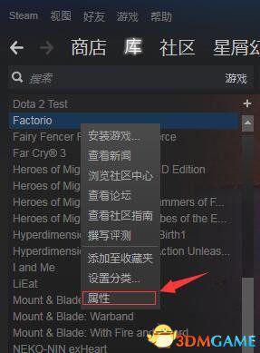 1.首先在steam中找到factorio,右键找到-属性