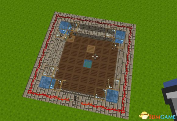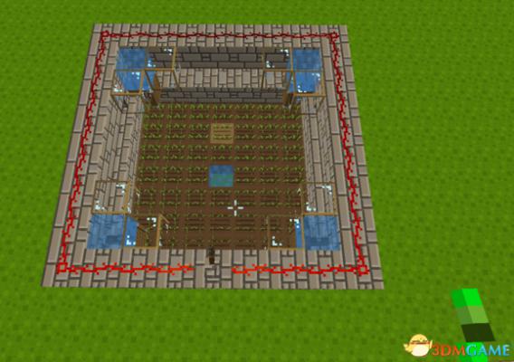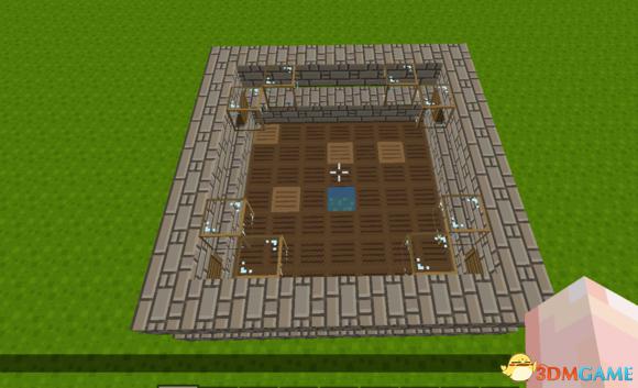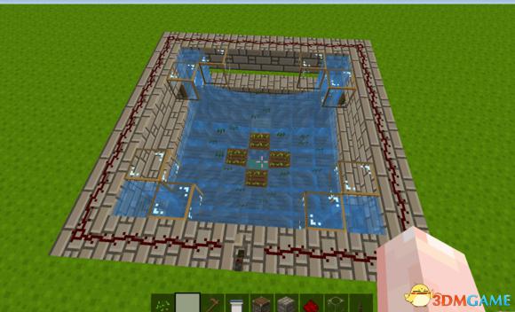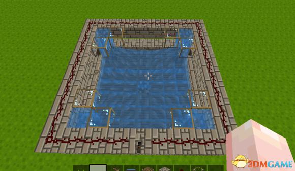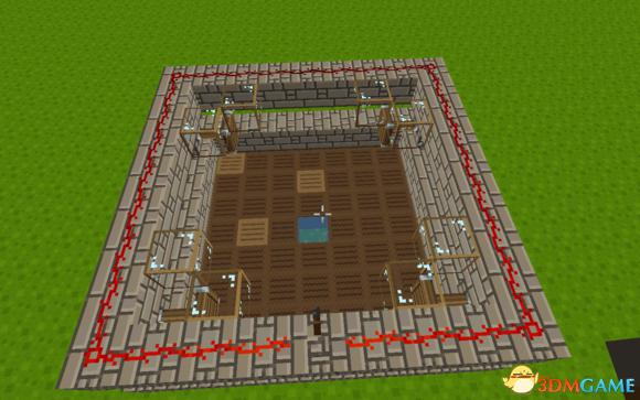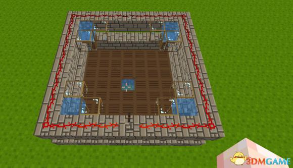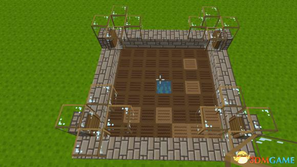 接着给四个角落都安上活塞,活塞上如图所示搭一个槽,等会要用于装水。