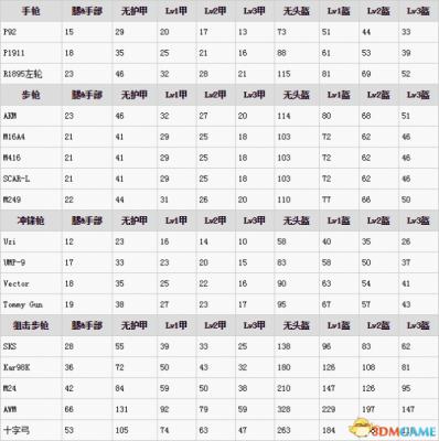 绝地求生大逃杀全武器伤害数据表 武器伤害值对比