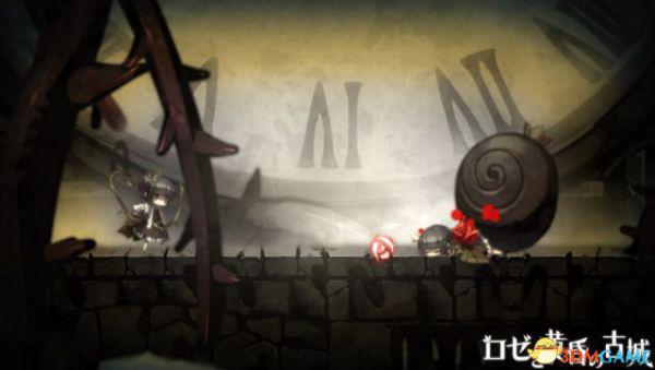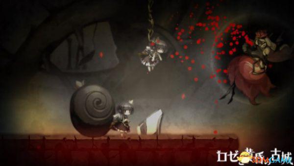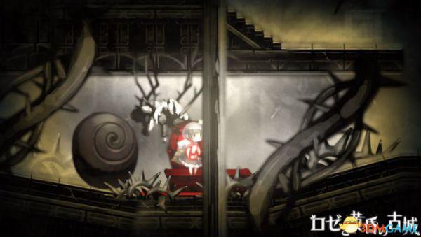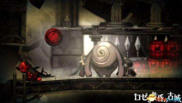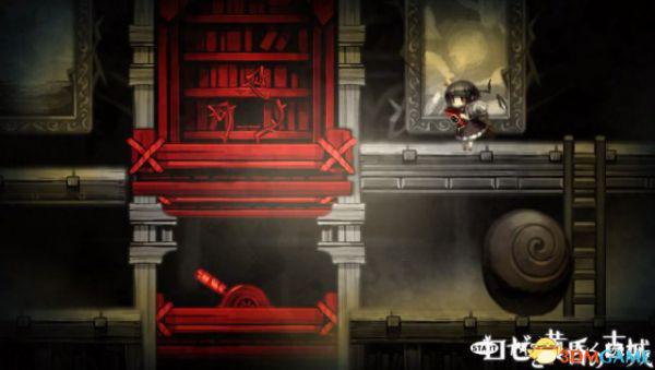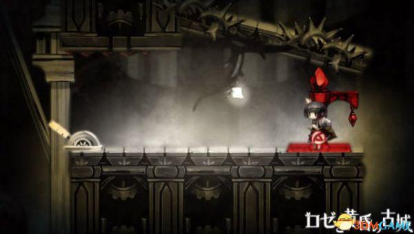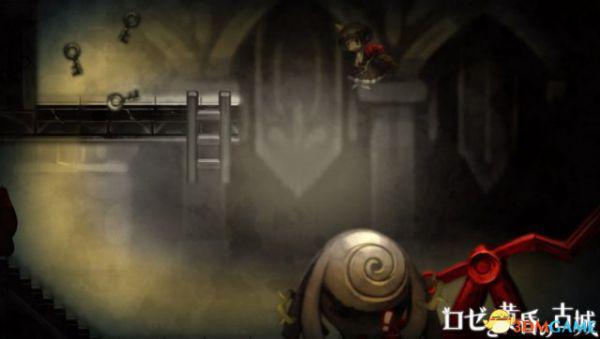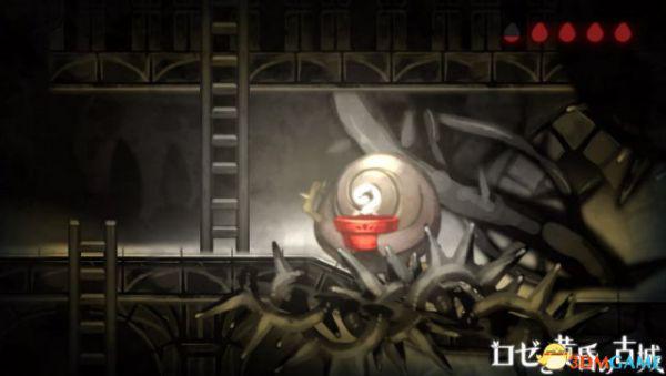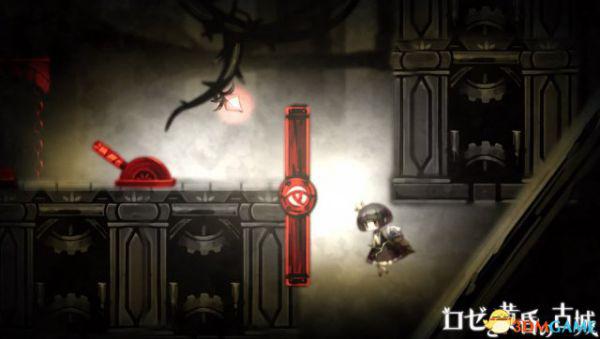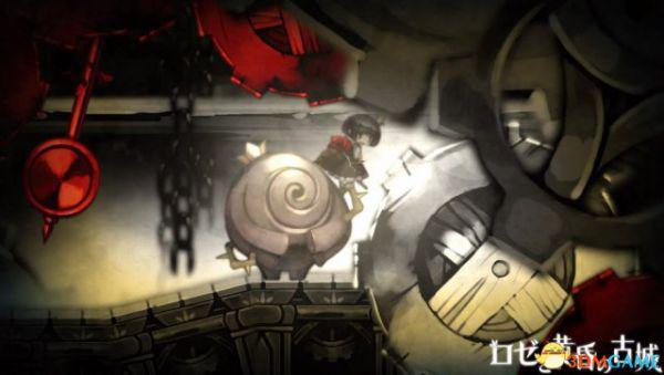3.来到最上层继续前进,引诱前方的机关下落后将萝洁抛上正在缓缓上升的机关。随后操纵萝洁跳至左侧,将血液移动到钥匙上。巨人拾起钥匙并且开启铁门。萝洁跳下来自杀从右侧的复活出来后,巨人抱着萝洁即可一路前进并且拾取到卷轴【血の水晶】。在血色水晶面前可以拾取到【いばらの研究日誌09】,吸收血色水晶的血液后可以观看本区域为取得的血液记忆,有红色血液的关卡就是没收集血液的关卡。随后进入下一面时针塔。