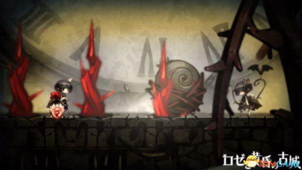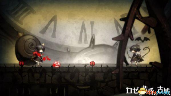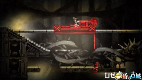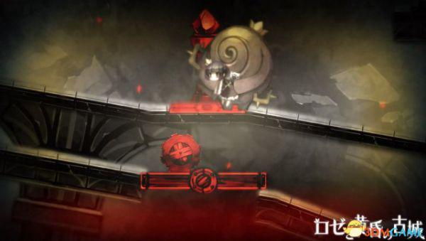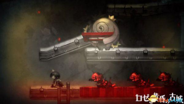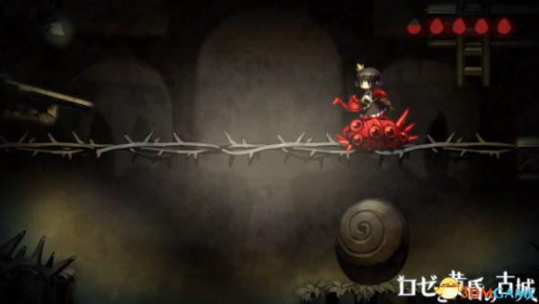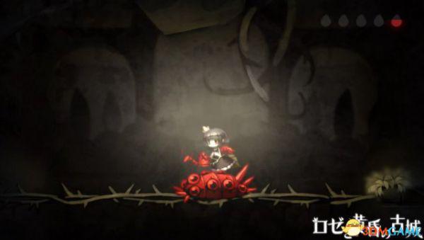 2.在连续经过连个蹦床后让石巨人单独乘坐摆动的木板并且点亮对岸的血色孢子。接着让萝洁自杀即可于右侧重生。