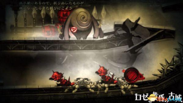 5.接下来让巨人站上投石机并且让萝洁启动。巨人上去即可获得钥匙下来开门。通过红色断桥即可来到下一面。