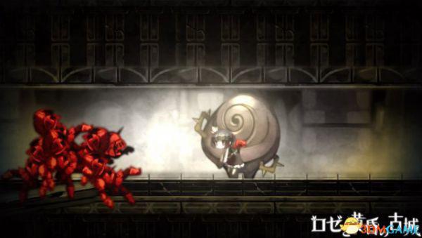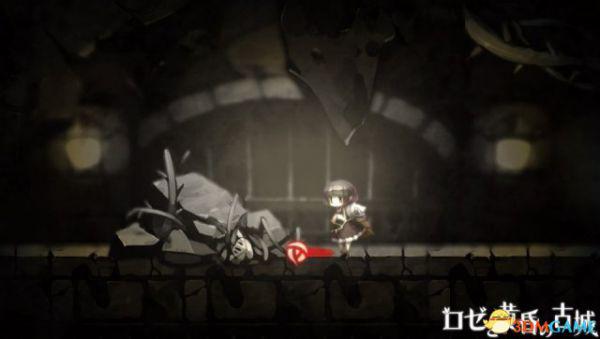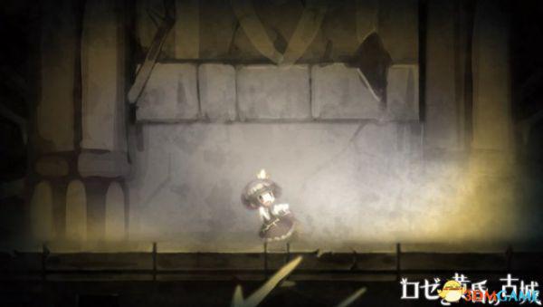 1.开场后直接使用巨人将木桶投掷左侧。随后正面会落下一块石砖,巨人前进至能看到萝洁的地方后。萝洁吸收机关上的血液。二人一起前进。