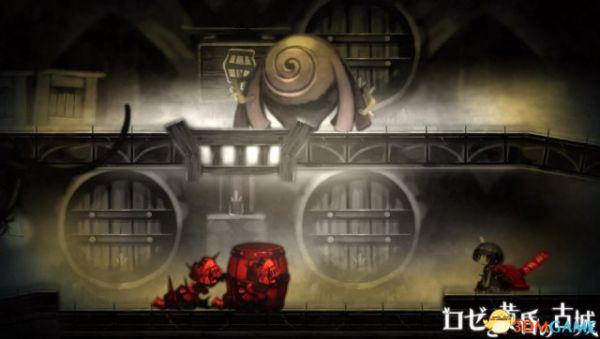 5.随后石巨人去左侧把蘑菇搬过来放在投石机上并且投掷出去,切换为萝洁立刻吸收在半空中飞翔的蘑菇的石柱的血液会让蘑菇停在半空中。接下来萝洁钻入木桶,巨人把萝洁桶放在投石机上投掷出去萝洁即可滚到深处。拾取到【ヴィオラの日記07】,并且将身上的血液附着在钥匙上即可。