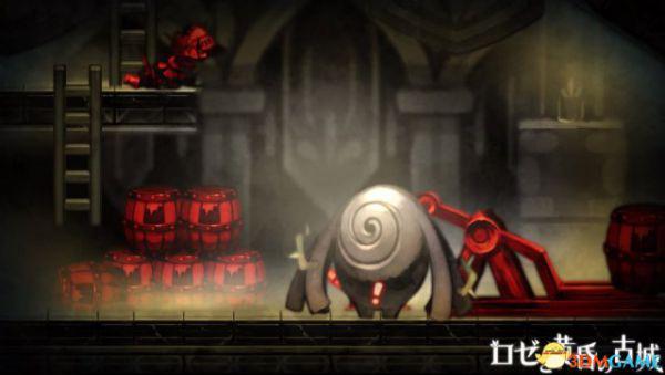 5.等待几名士兵都过去后从木桶中出来来到二层将萝洁放在机关上,让右侧的石巨人通过铁门。随后将萝洁放置在投石机上丢上去。跳起来将血液附着在最上面的钥匙上,通过梯子下来后在将石巨人投掷上去拾取钥匙。即可前往下一面。