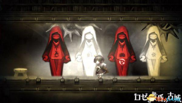 2.5.这里萝洁来到上层后先开启前方机关。随后在将升降梯放下,待升降梯落地后在升上来。这个时候跳到上方平台上。(注意章节开始后将石巨人压在机关上保证萝洁身上没有血液并且按照攻略方式攻略)接下来吸收台阶上的血液获得【看守の記憶】。获得记忆后场按Select自杀吧。