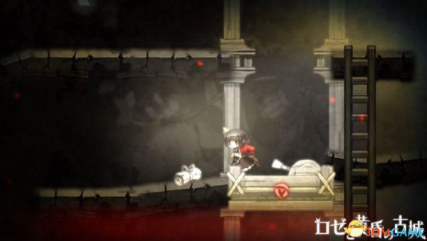 1.开场后抱着萝洁跳下,随后在右侧尽头让萝洁爬梯子下来,并且吸收左侧墙角的血液。随后爬上梯子用血激活机关。