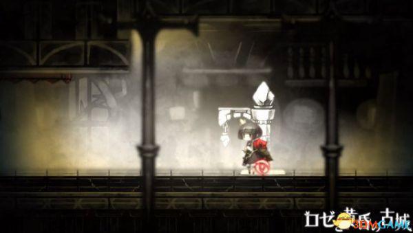 3.随后萝洁即可开启里面的机关让左侧的铁门打开。在通过吸收血液的方式将落岩改为阶梯继续开启左侧机关。前往下一面。