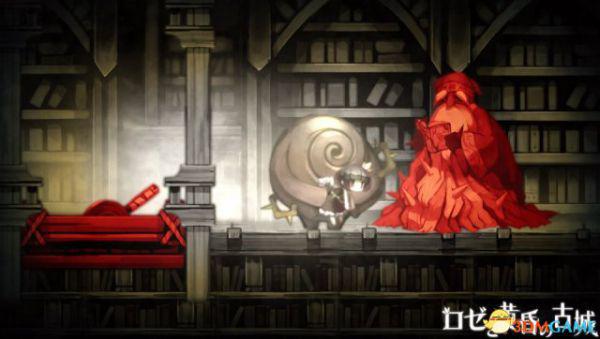 2.萝洁吸取红色砖块的血液后站在投石机上,石巨人在将萝洁投掷上去。