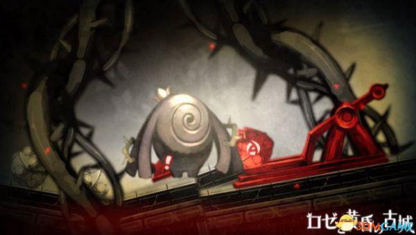 5.前方第一处落岩吸收血液即可通过。随后先让石巨人去投石机左侧深处抓一只虫子过来放在投石机上射到右侧吃人花的嘴里。这里注意需要先启动投石机,然后将虫子尽量摆放在投石台子的右侧才能成功弹上去。随后萝洁上去拿到钥匙。返回用钥匙开启大门即可前往下一面。