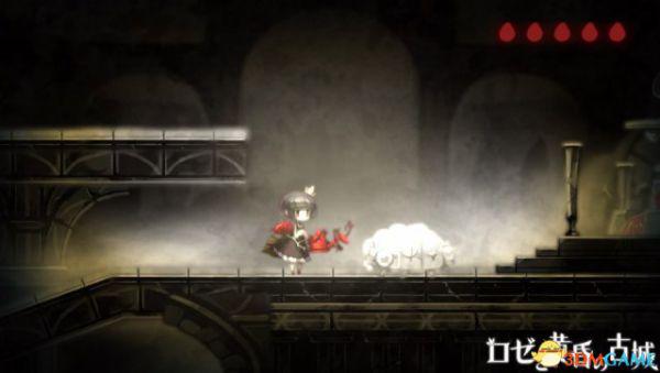 2.来到下方后巨人将台子踢落。切换成萝洁吸收血液让台子可以成为桥梁。注意如果台子掉落上面会重新掉落一个。注意萝洁在通过后将血液还给台子让台子掉落。