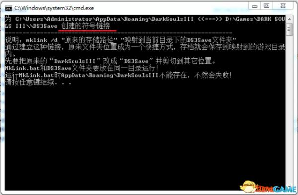 用Mklink指令建立一个传送门,把存档目录映射到非C盘目录,这样原来的存档文件夹 “DarkSoulsIII” 就变成一个快捷方式,游戏程序以为自己把存档保存在这个位置,但其实都通过传送门转移到了另外的目录,这个快捷方式映射的"DS3Save"既可以在游戏根目录,也可以在任意位置。无论C盘怎么样都不会影响到存档了,因为存档的实际数据已经不在C盘了。