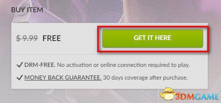 登录GOG平台后,点击右侧的“GET IT HERE”即可免费获得游戏。