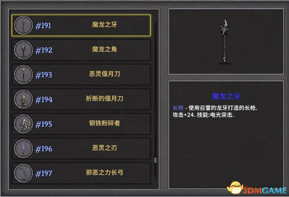 (第2章能否获得楼主不知道,毕竟苦逼没获得过)且麻痹效果在对面第5章的各种硬直强度高的小怪时非常有用一次麻痹可以让玩家多打出一套输出,外加一次倒地,加起来楼主是认为超越了领主长戟的。加上外形比领主长戟好看,所以在这里楼主将他排在第5位。