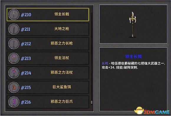 作为领主系列中的武器,初始的长枪类最高攻击34,且武器技能:破阵突刺,攻击一般但是范围还不错,能很好的帮玩家突破被怪物包围的局面,但是武器技能不算特别突出,造型看起来也一般般,并没有太大的亮点可言,总之算的到中上品吧,没有好武器的话凑合用用或者想换换口味也还能玩玩。