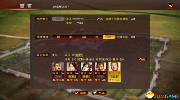 申请自己不擅长的任务,目标选最多,内政任务一次可以有1000多的资金,把他们换成名品再解除任务就好了