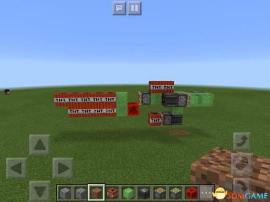 应该很多人都知道,活塞的最大推动量是12个方块。所以当在推第13格方块的时候就会停止。前面的普通活塞就算在激活状态下就会不动,红石块不动,TNT就会自动推到红石块下面,红石块就激活TNT。