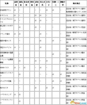 下表为各位女性角色所喜好的礼物,其中像 “ハートのリング”、“ハートのネックレス” 这样的首饰价格很高,但只要掌握快速赚钱大法,也不是事,可恣意购买。