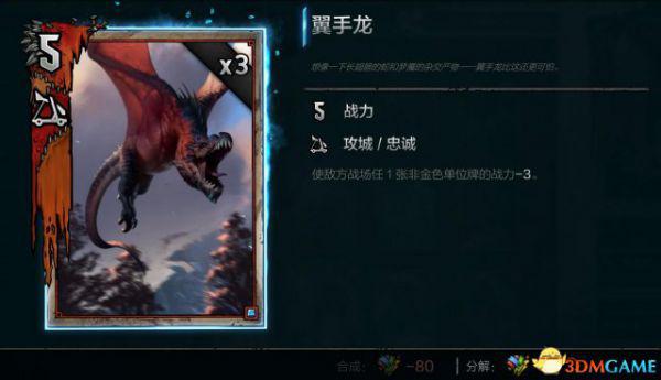 翼手龙:5战力,攻城排。使敌方战场 1 个非金色单位的战力-3。