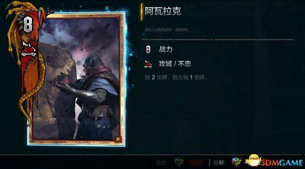 阿瓦拉克:8战力,攻城排,间谍。抽2张牌,敌方抽1张牌。