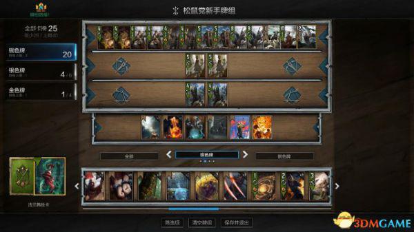 现在我们进入游戏,打开“卡牌”→“牌组编辑器”,选择“松鼠党新手牌组”。进入界面后可以看到牌组编辑器中有25张牌。随着游戏时间的增长,我们的资源会不断增加,牌组也会得到改进,玩家们可以获得更多的趣味性和竞技性。