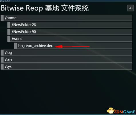 1.在游戏里找到你打不开的DEC文件,记住它的名字(这里以Bitwise reop基地里面hn_repo_archive.dec为例)。