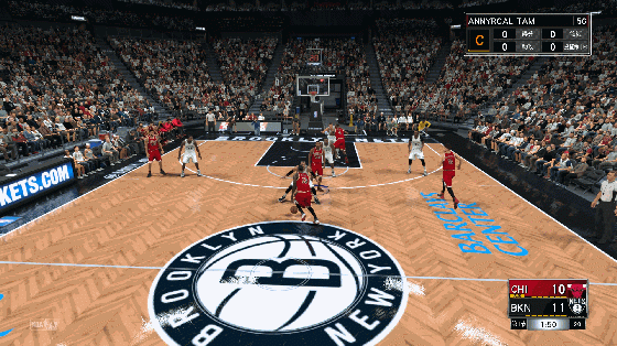 这种catch & shoot能够扩大球员的力量槽(如果远离篮筐、被人紧逼,力量槽会缩短),在这刹那球员的手感会上升,是出手的好时机。
