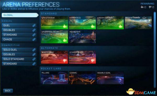 在这里,你有4个偏好设置机会,与2个厌恶设置机会,游戏会根据你的选择为你找的最合适的场地,建议偏好票全投给标准场地,非标准场地都Vote Down,如图所示