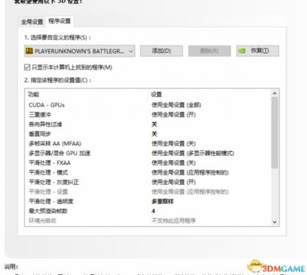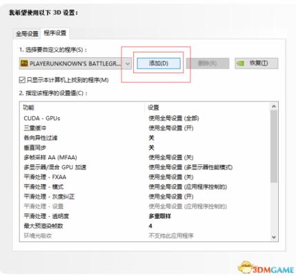 关于N卡 3D管理-自定义的程序没有 绝地求生游戏的