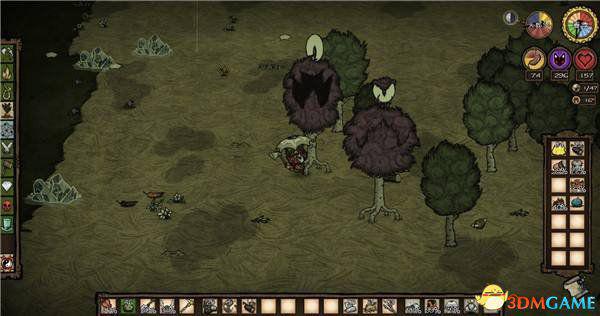 确定家的位置后把其他东西都放家里,带着锤子、铲子、草、树枝、燧石和食物去移植鼹鼠,移植方式就是黄昏或夜晚鼹鼠出来用锤子敲晕捡起来,再把它的洞铲掉(如果不铲洞无论天涯海角它都会回家的,但如果觉得这个洞还有用你重连下游戏不铲洞也可以),一般来说怎么也能找到5只鼹鼠,当然越多越好。是不是要给鼹鼠喂食取决于你角色的攻击力,这个之后会讲。