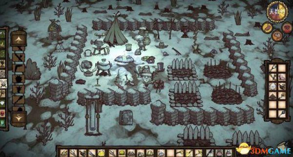 (3)从鼹鼠那里刷矿石(虽然一般来说没必要)的方法:中间建个鼹鼠陷阱——用石墙和门围一个边长为4块石墙(斜着放)的区域,周围放20只鼹鼠,想刷矿石时趁鼹鼠没出来时在陷阱内铺满燧石(一块一块分开铺,大概20块),鼹鼠出来后被陷阱吸引,之后你就可以沿顺时针或逆时针方向一直铲,边铲边捡,没有洞的鼹鼠会去重新挖洞之后会再被陷阱吸引。这里还要说明一下,能够吸引鼹鼠的东西对鼹鼠的吸引力均相同,整个放一组的吸引力与放一个相同,如果陷阱周围只有3只鼹鼠则只围一块燧石就够了,但23块燧石最多能完全吸引21只鼹鼠(具体数据可能会因电脑而异)