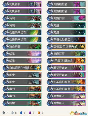 先说说我的卡组,我把一开始抄的卡组调整了一下,有带海盗体系的,我的卡组是不带的,因为天梯现在有很多带杀海盗的螃蟹,还有可能就是我人品有问题,1费总是抽不到。带了一个毒药,两个毒刃,一个刀瓣齐射,一个军7,一个闷棍。其他的应该都大同小异,带毒药主要是因为前期苦痛,北郡等等3血怪很头疼在没有背刺的情况。