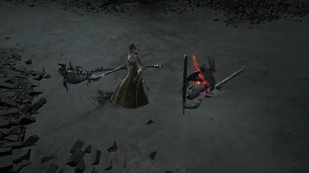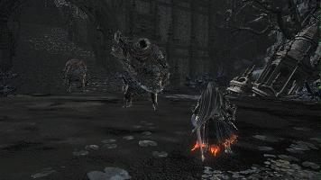 召唤爬在地上的黑色小怪的是旁边的长柄杖小怪,有两种:召唤型(会近战)和法师型(不会近战,会变成大块人性怪物)。法师型只会远程放幽邃灵魂块。