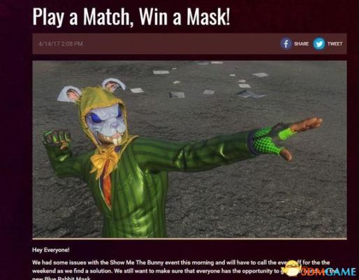 本周六、周日(4月16-17日)只要登陆,并且完成人以一局游戏(单人,双排,五排),所有服务器均可,每一位玩家即可获得一个兔子头,一个已经解锁的No Mad箱子。任意打一把,下周就发给你。并非即时发放。