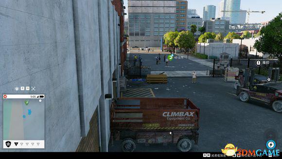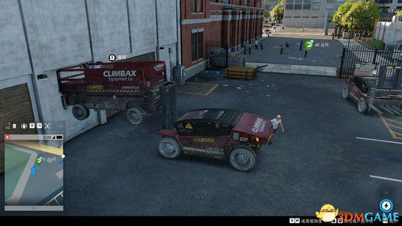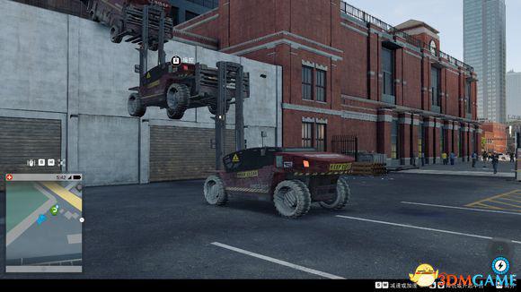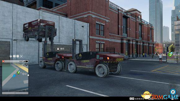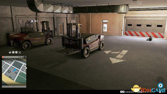 叉车旁边的车库门打开会看到一个工地,可以直接看到远处的第二个叉车,直接可以操作开过来。