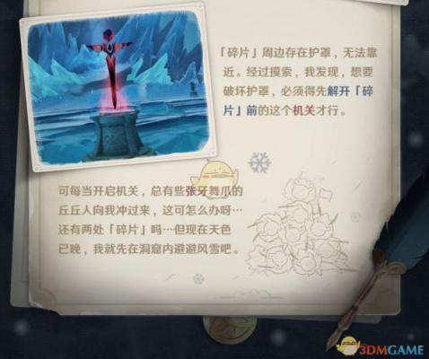 可每当开启机关,总有些张牙舞爪的丘丘人向我冲过来,这可怎么办呀。还有两处「碎片」吗…但现在天色已晚,我就先在洞窟内避避风雪吧。