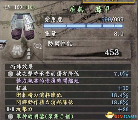 4. 膝甲:这也是防御力和坚韧都很高的一个部位。推荐用盾无(同胸甲)。