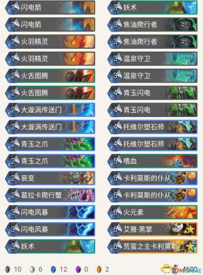起手留牌:4费及以上的高费牌全不要,闪电风暴亏节奏的也不要,闪电箭根据对面职业(前期有危险随从)可留至多一张,低费随从,低费屁股,大漩涡,青玉之爪,12元素,都是神器。