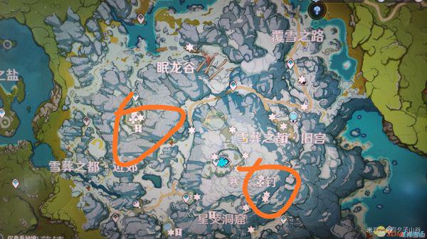注:第二个寒天之钉位置的坚冰要从星荧洞窟进去