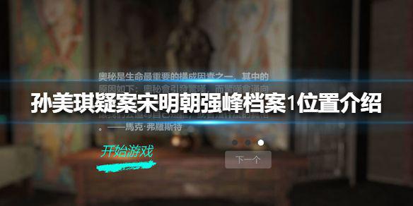 孙美琪疑案宋明朝强峰档案1位置介绍,在孙美琪疑案宋明朝中,玩家需要寻找线索完成任务,不同的线索所在的位置不同,那么线索强峰档案1在哪,下面小编给大家介绍一下,一起来看看吧。